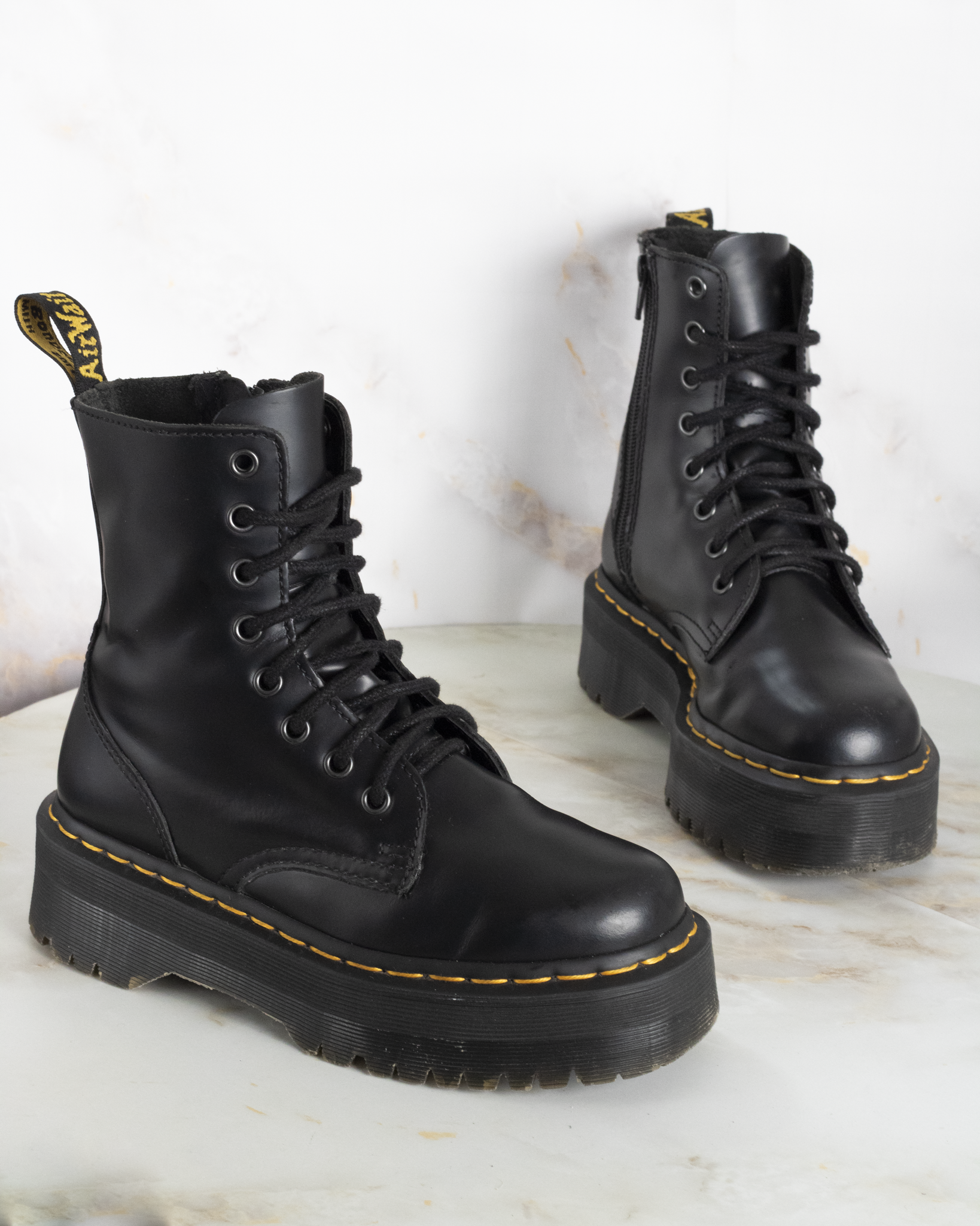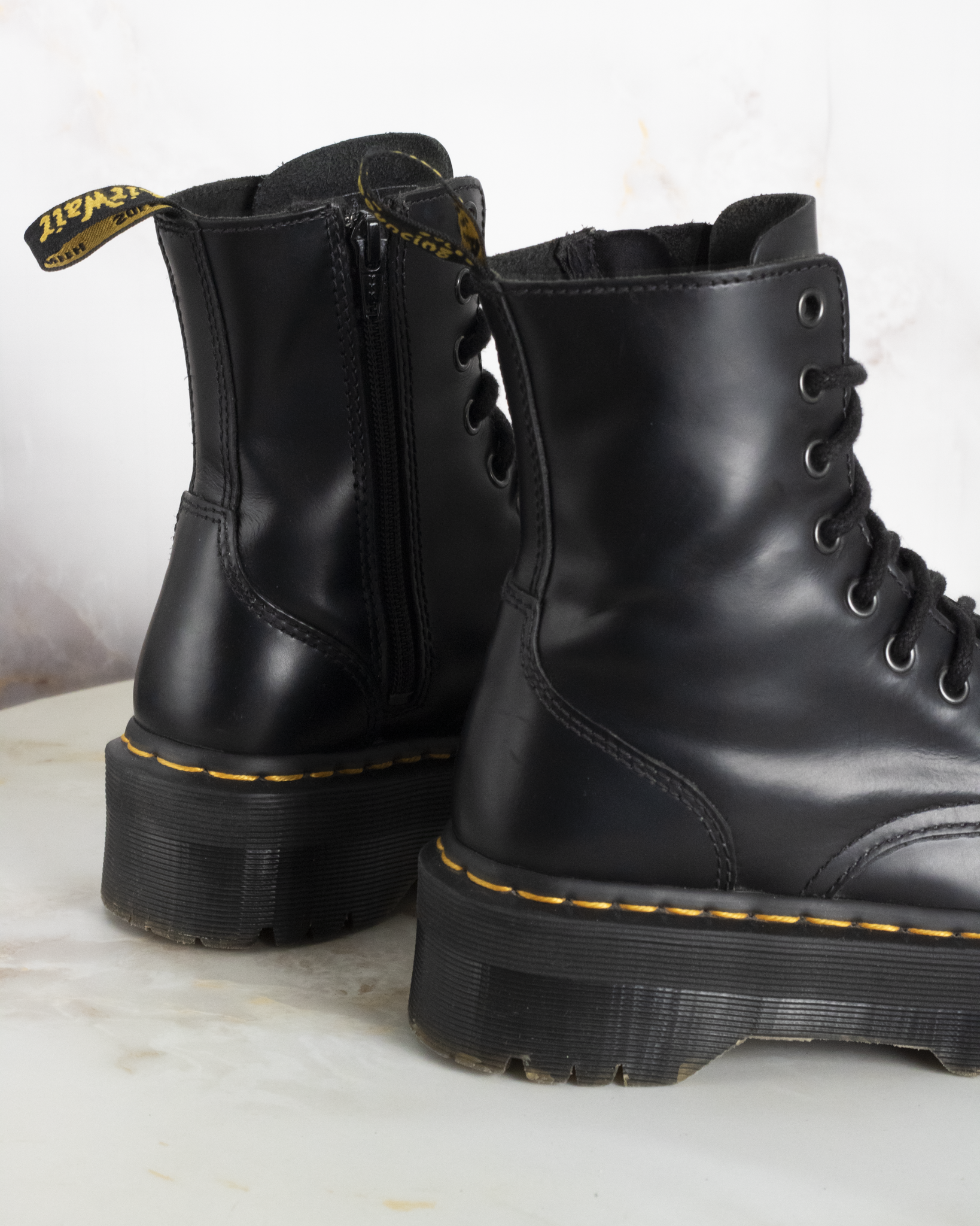 Doc Martens Jadon Black Smooth - UK 3. Full retail price R5,999. You can view & try them on in-store at That Shoe Lady - 171a Buitenkant St, Gardens, Cape Town. We accept trade-ins in exchange for store credit ☺️