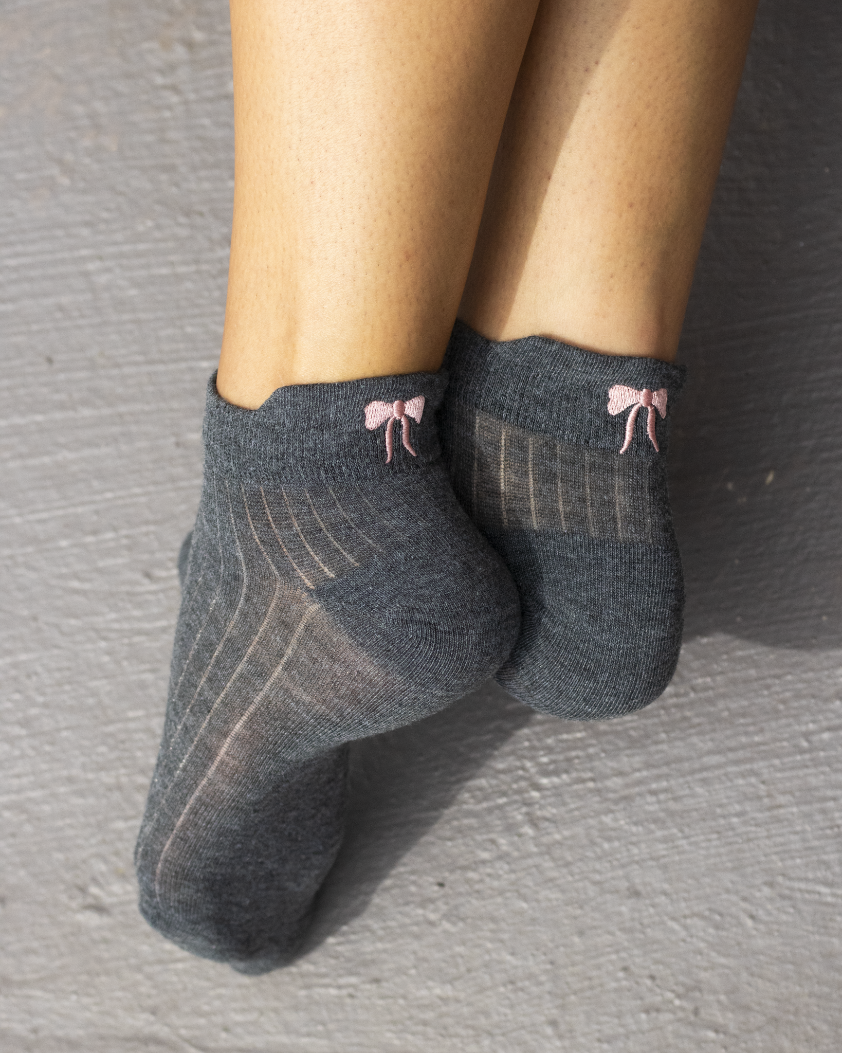 SEMI-SHEER PINK BOW AT BACK GREY
