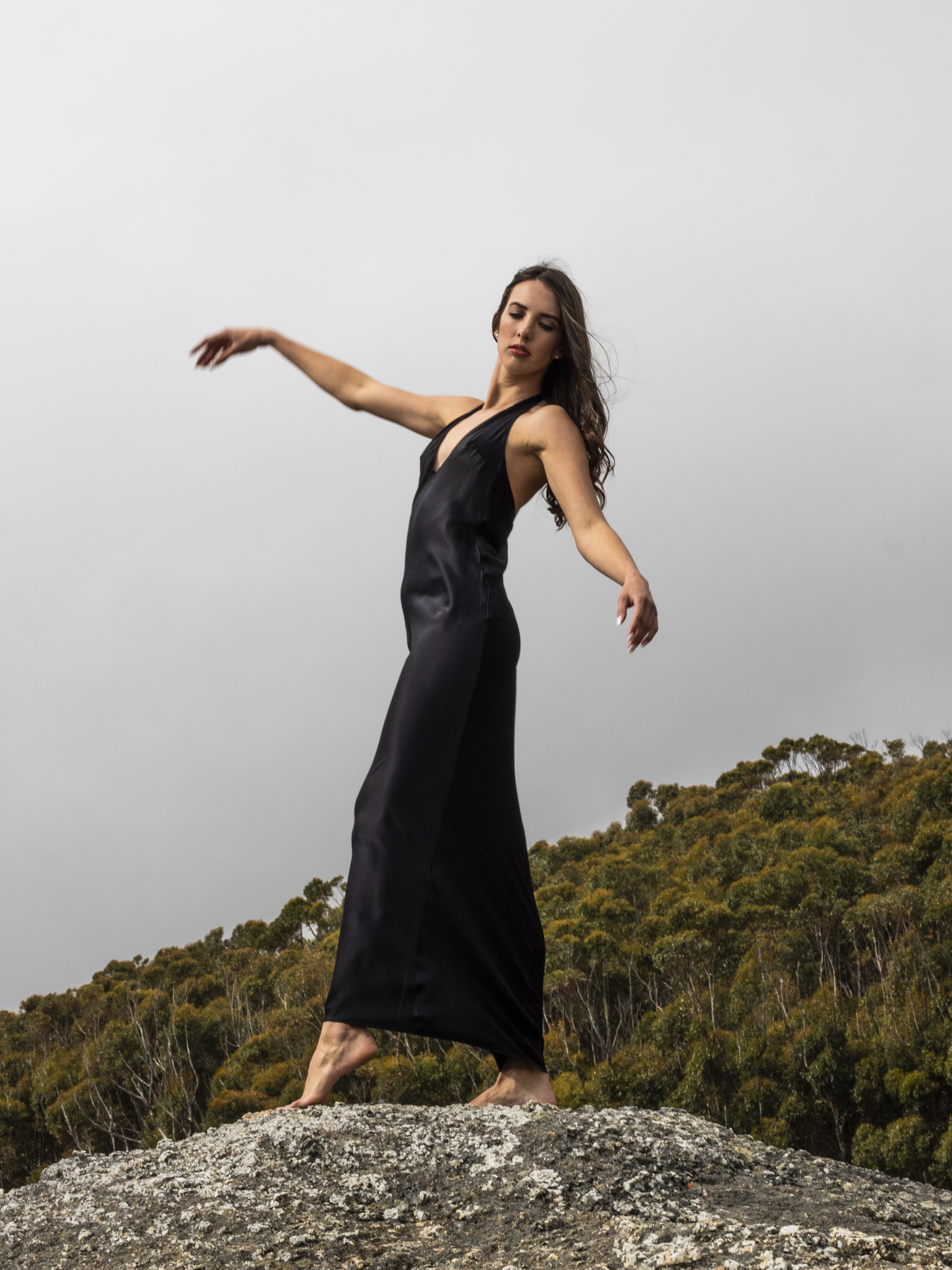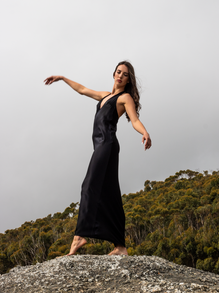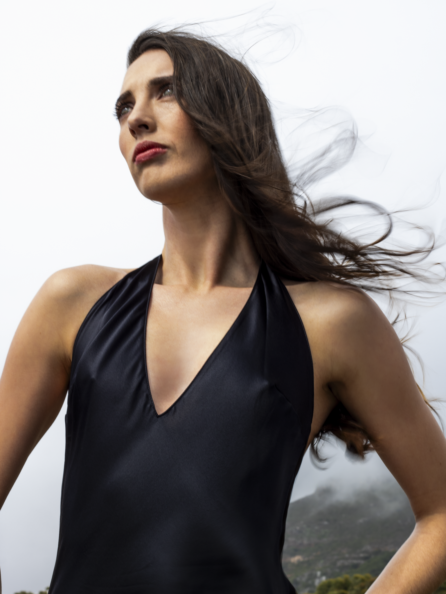 An elegant halter neck dress made from luxurious satin by New York designer, Amanda Uprichard.