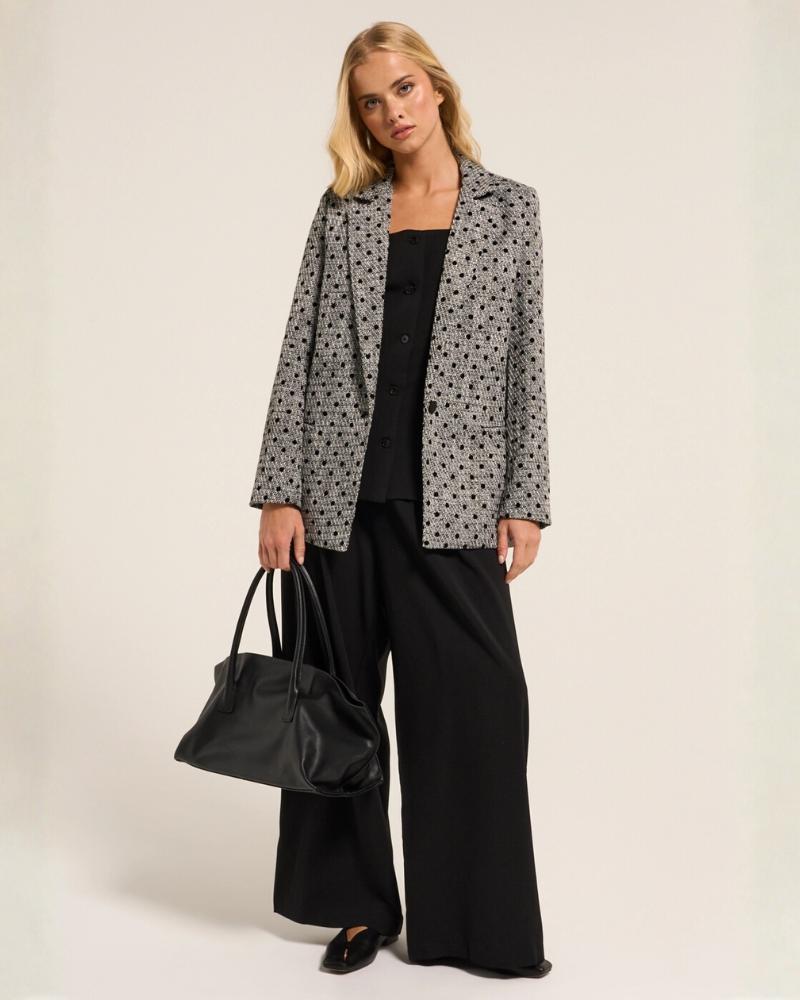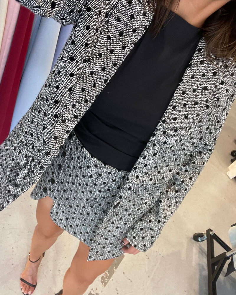 A beautiful polka dot tweed blazer by New York designer, Amanda Uprichard.