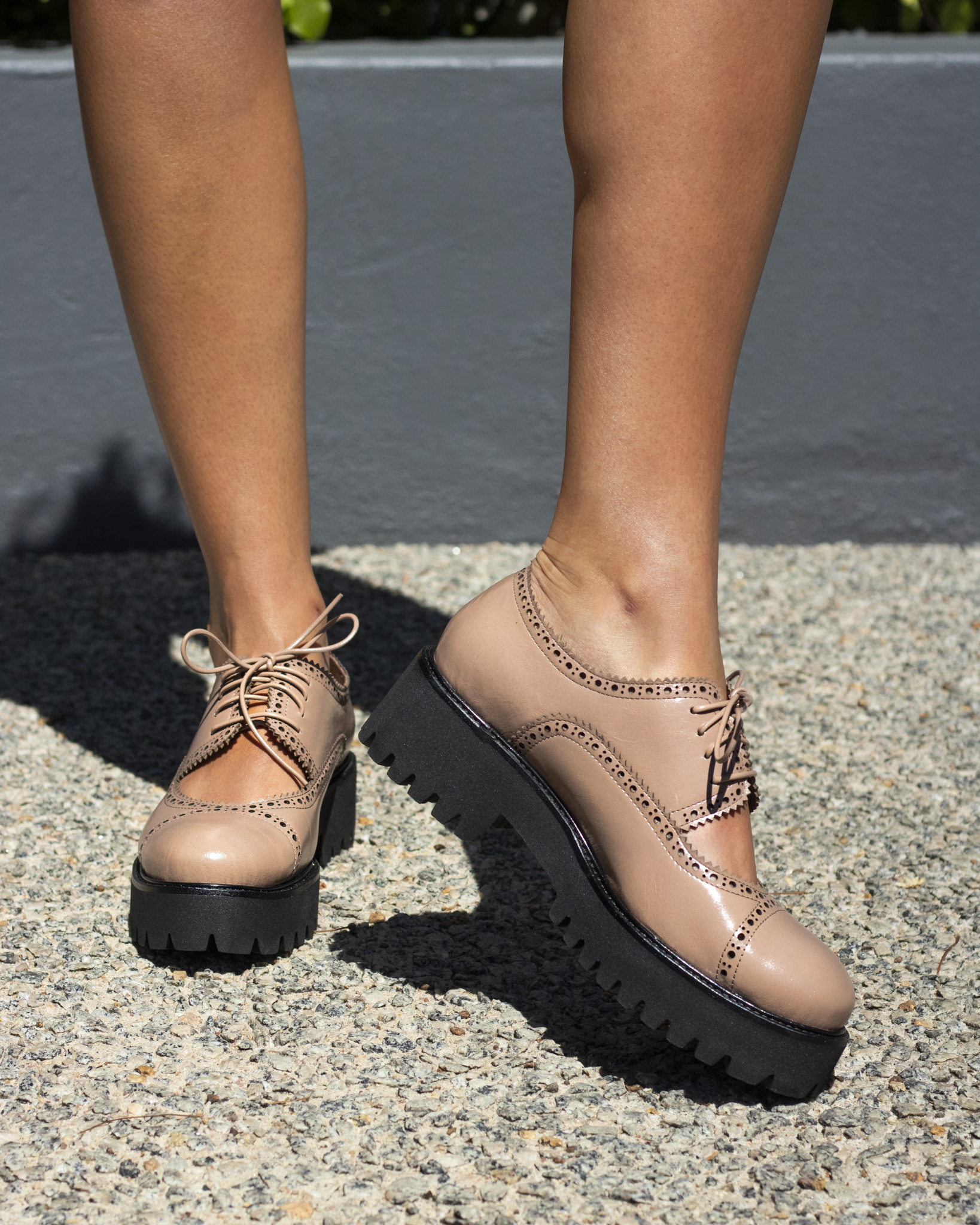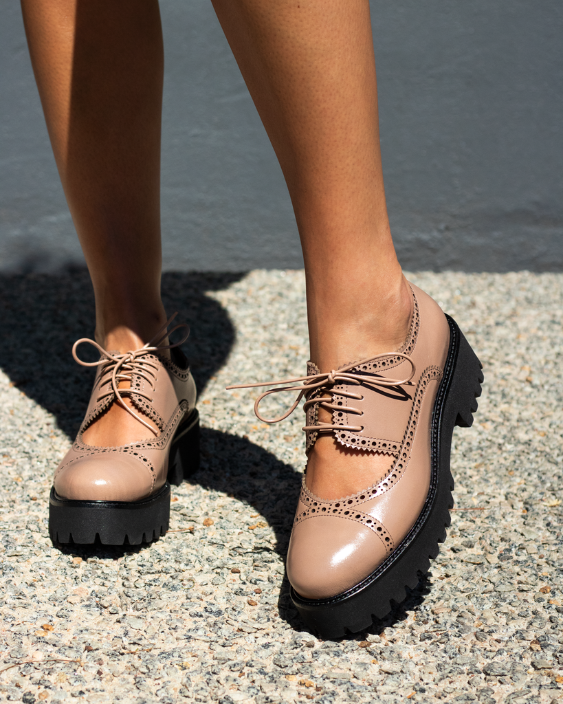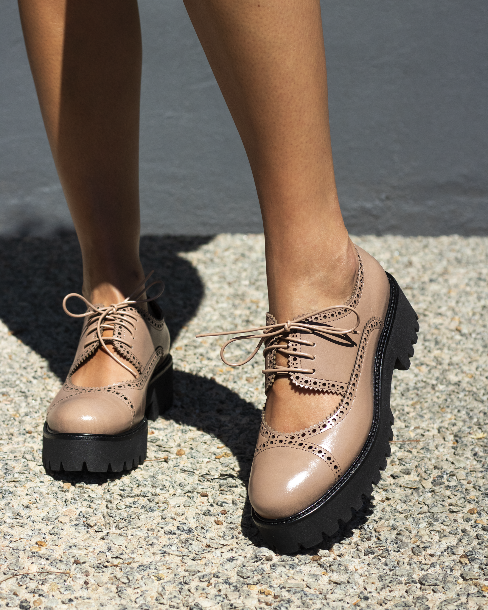 REALISTIC by Jeffrey Campbell is a striking and versatile oxford, featuring a beautifully laser-cut brogue upper. Complete with a set of leather laces, this cut-out brogue looks incredible just by itself, or with a cute pair of sheer socks.