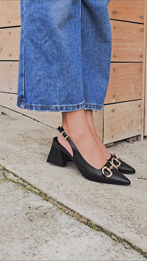 NAKITA by Jeffrey Campbell is a slingback heel featuring chain detailing on the upper.