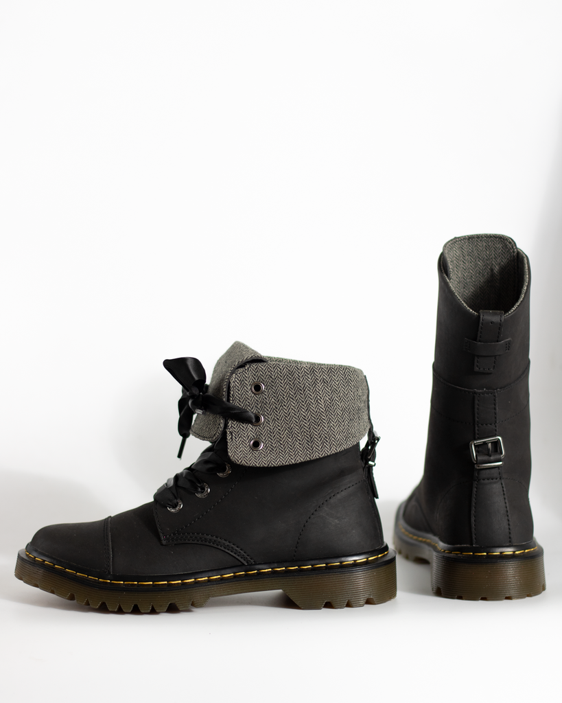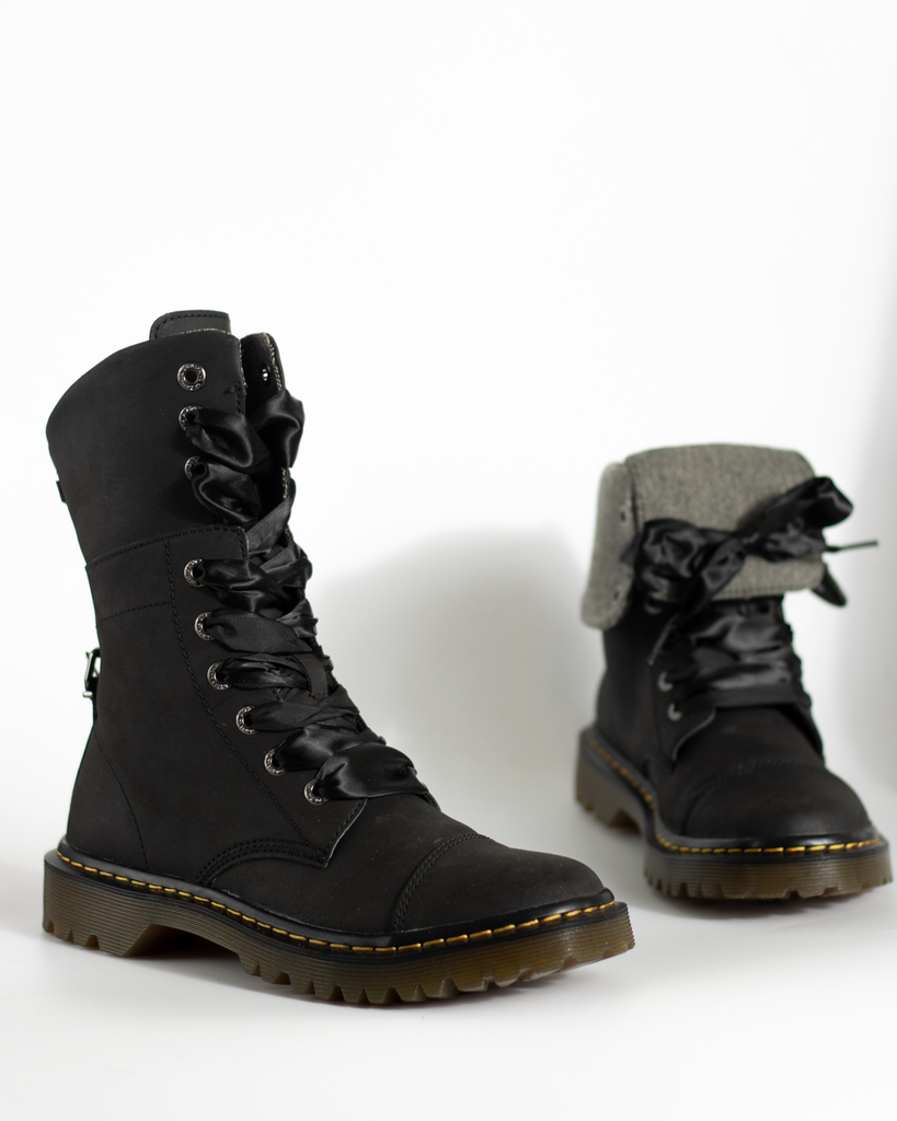 Add an edgy-cool look to your ensemble with the Yuba combat boot from Dr. Martens. These leather high-tops feature ribbon laces for feminine style and an AirWair™ sole for a confident stride.