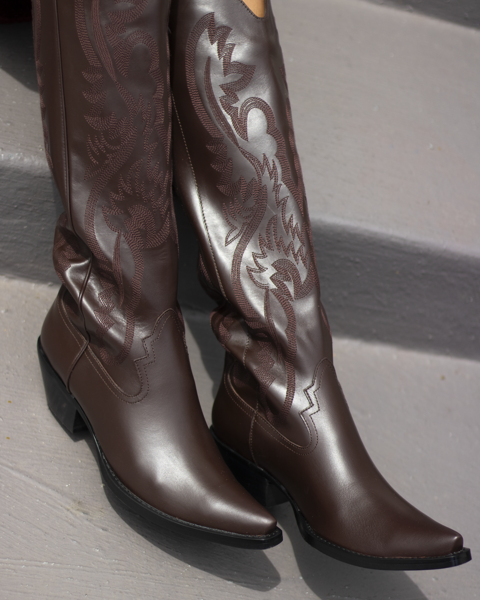 Jeffrey Campbell THE-KID-KH are classic knee-high boots inspired by western style, combining elegance with durability.