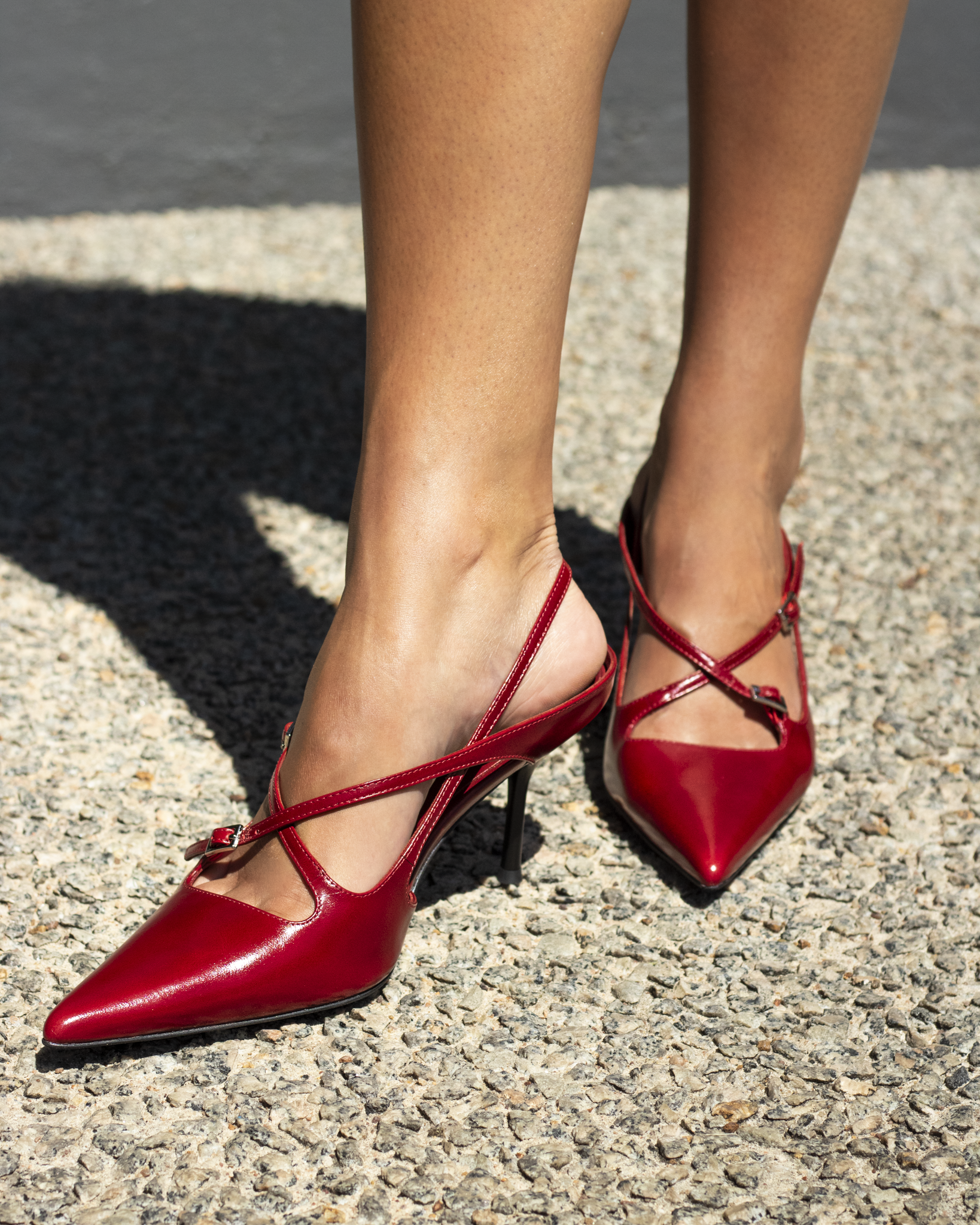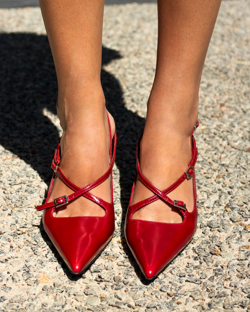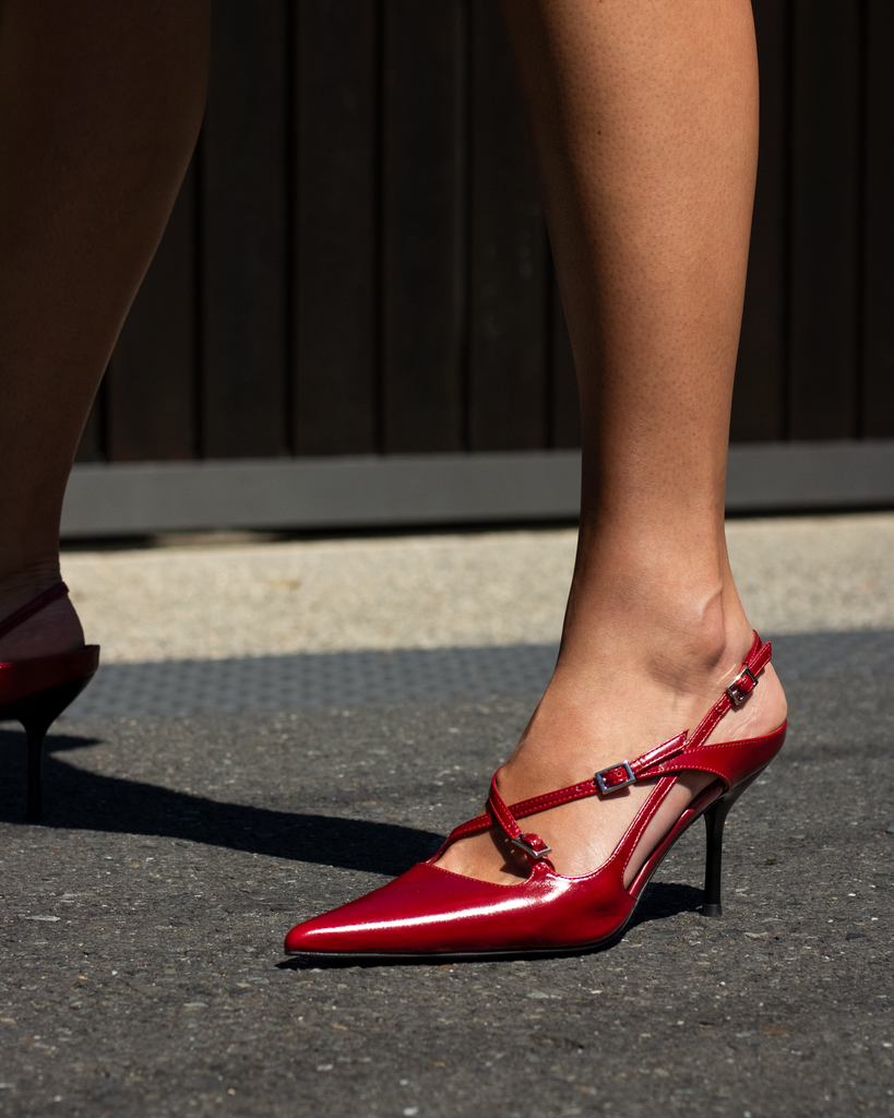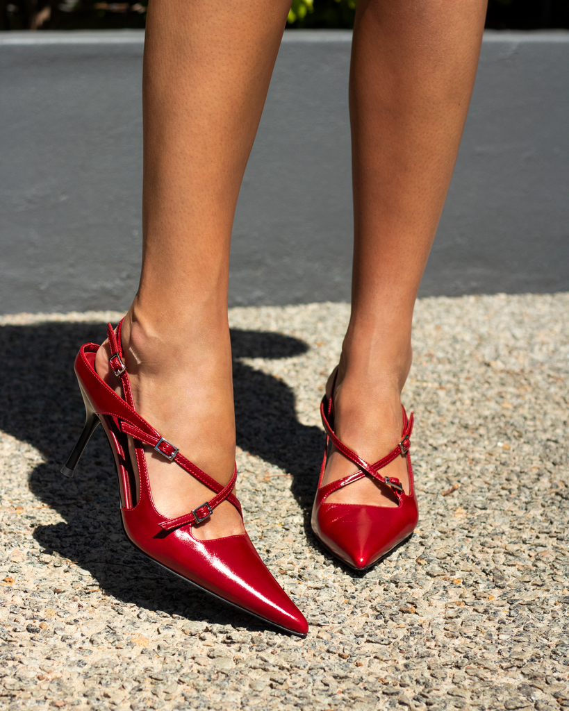 FAX ME by Jeffrey Campbell is a slingback heel with dainty buckled straps on the upper.