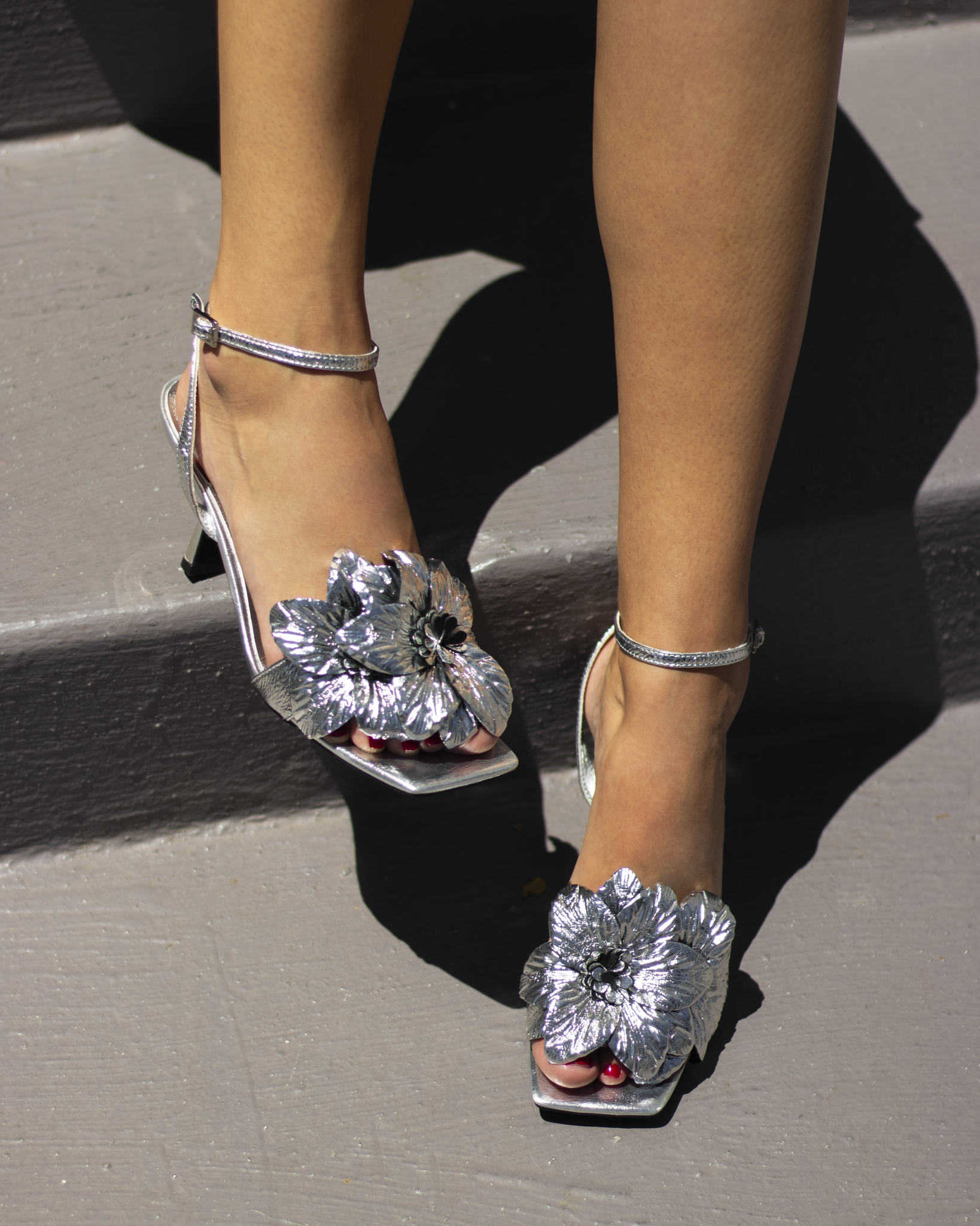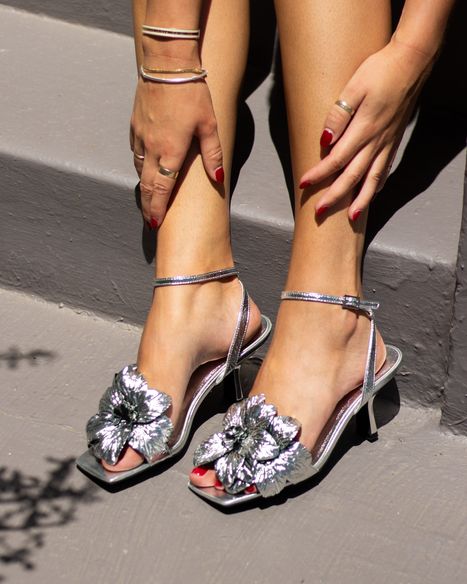 HONOLULU by Jeffrey Campbell is a kitten heel featuring an embossed flower on the upper.