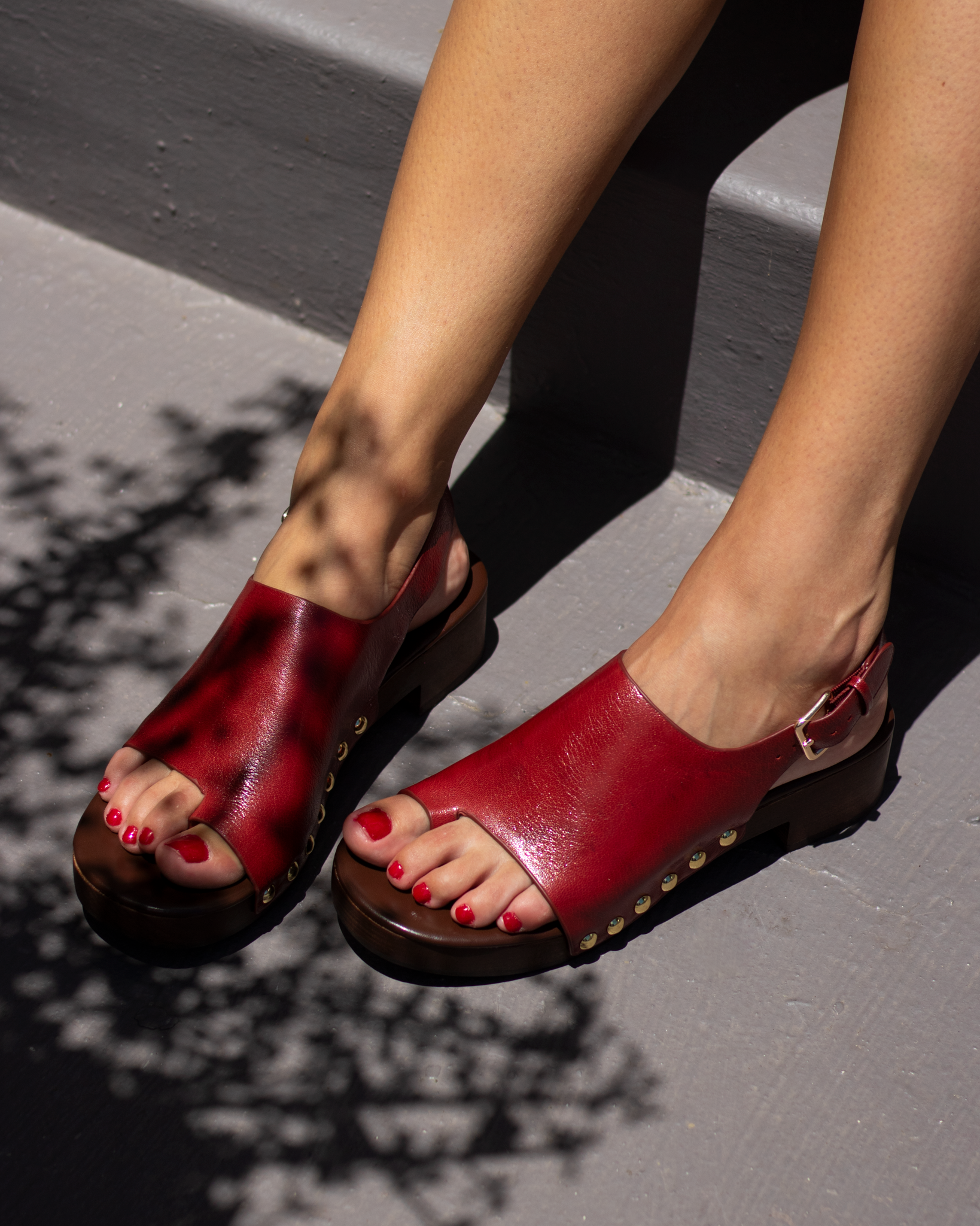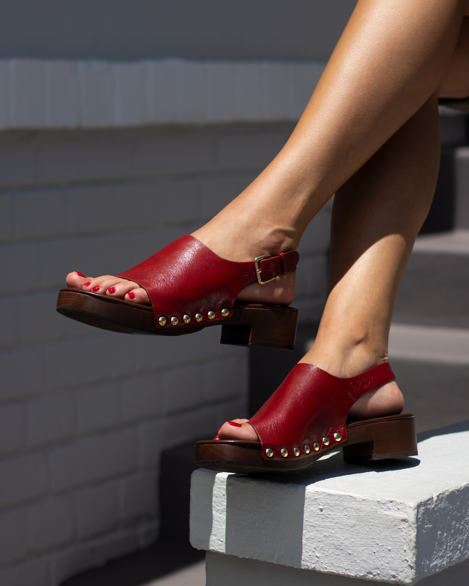 PIPPIN by Jeffrey Campbell is a clog sandal with stud detailing on the leather upper.