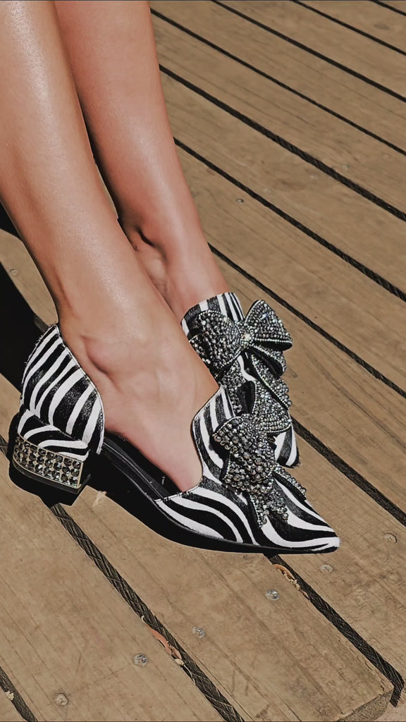 VALENTI by Jeffrey Campbell is an elegant loafer featuring a pointed toe and embellished bow on the upper.