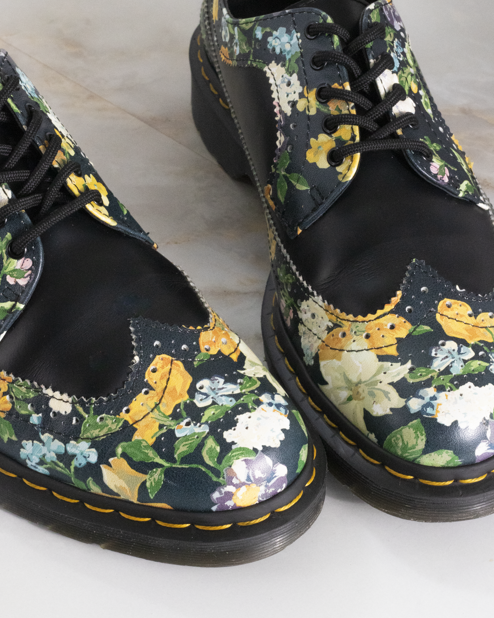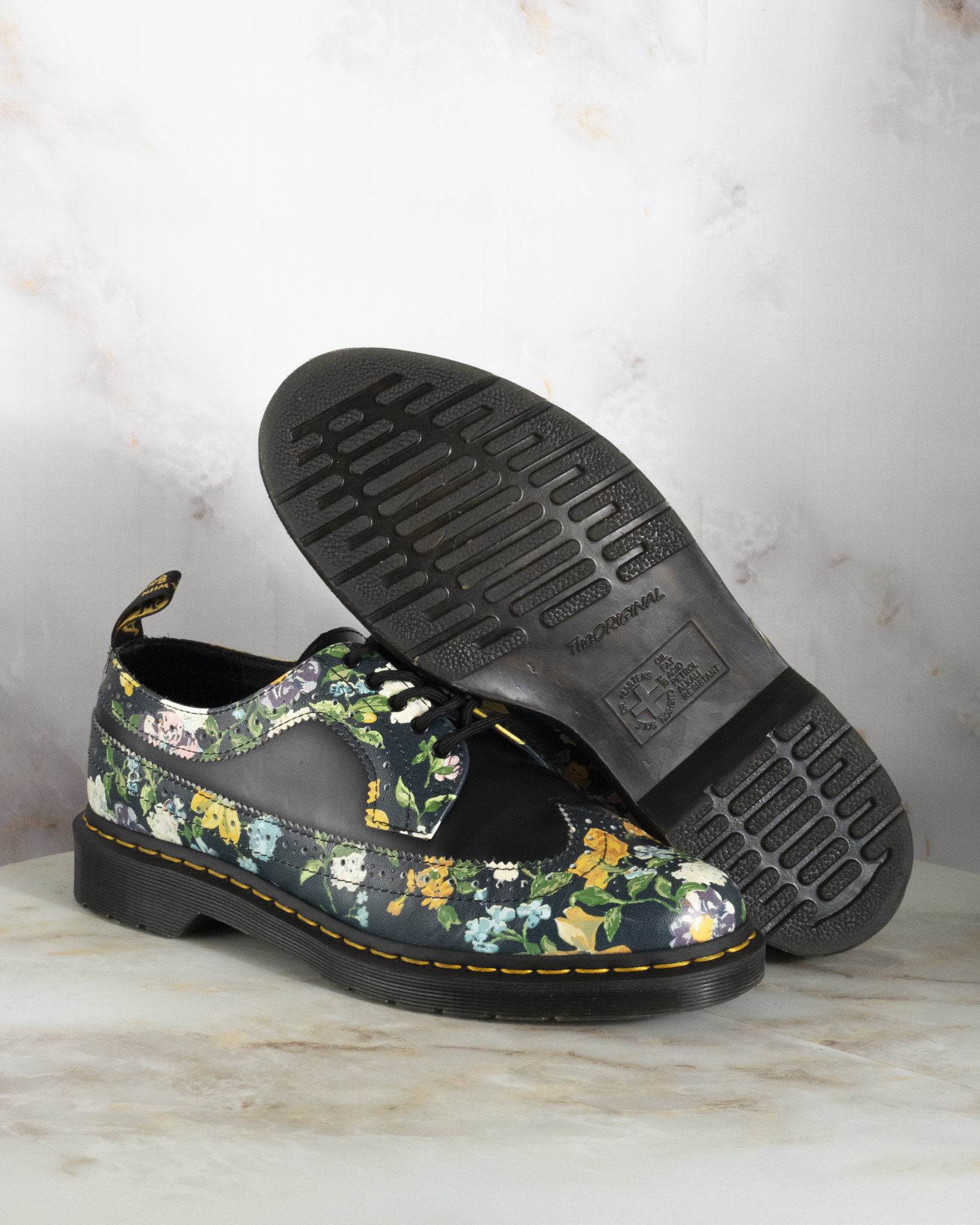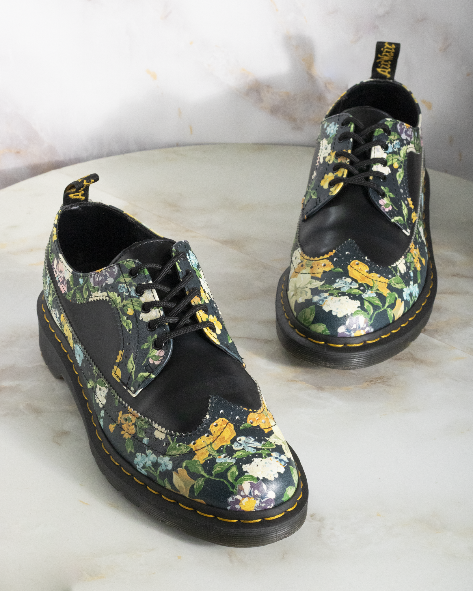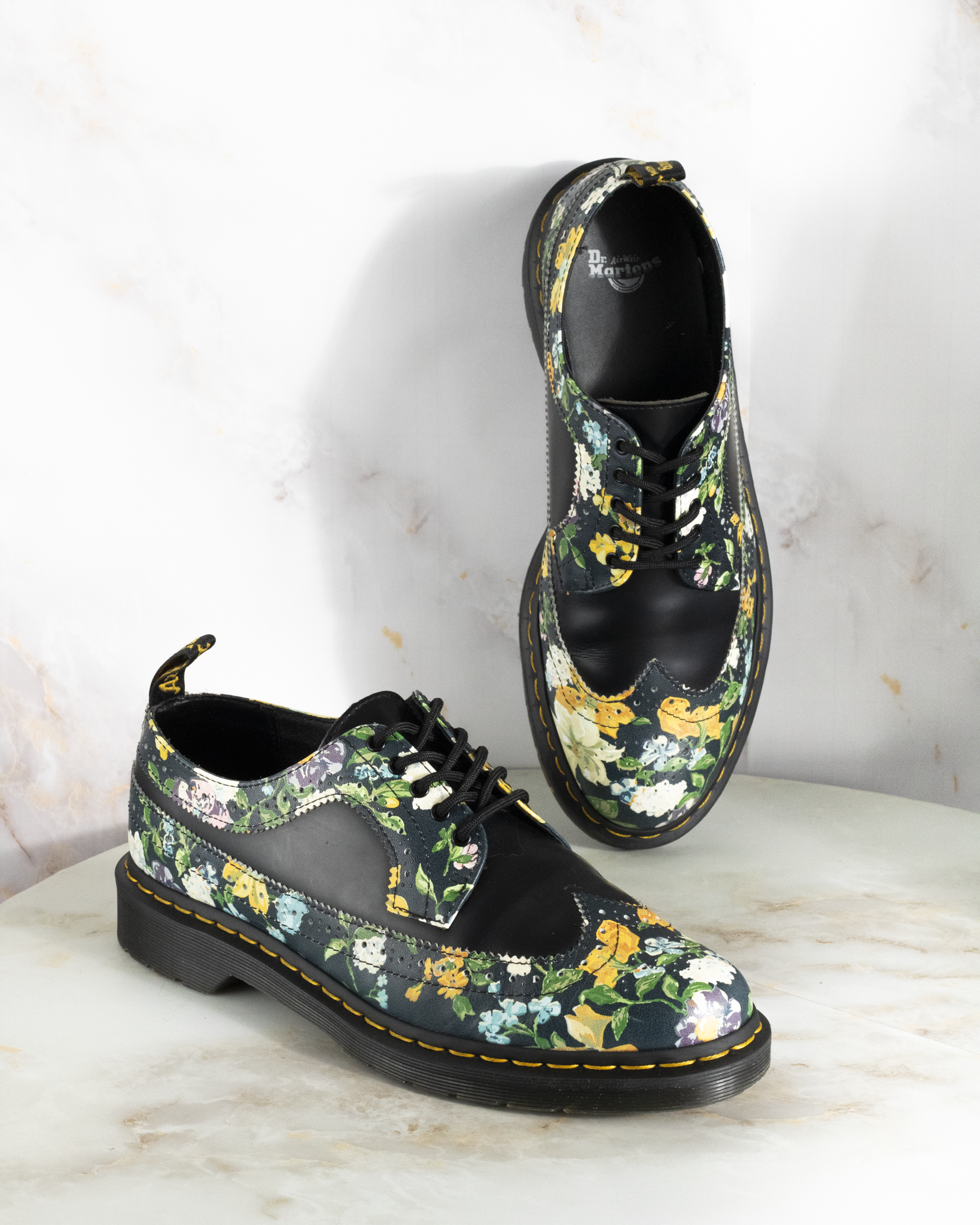 DR. MARTENS 3989 BROGUE DARCY FLORAL BLACK UK 9 - Pre-Loved