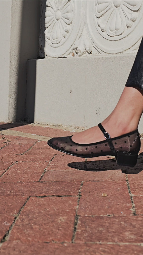 TOP TIER by Jeffrey Campbell is a classic mary jane style featuring a polka dot mesh upper.