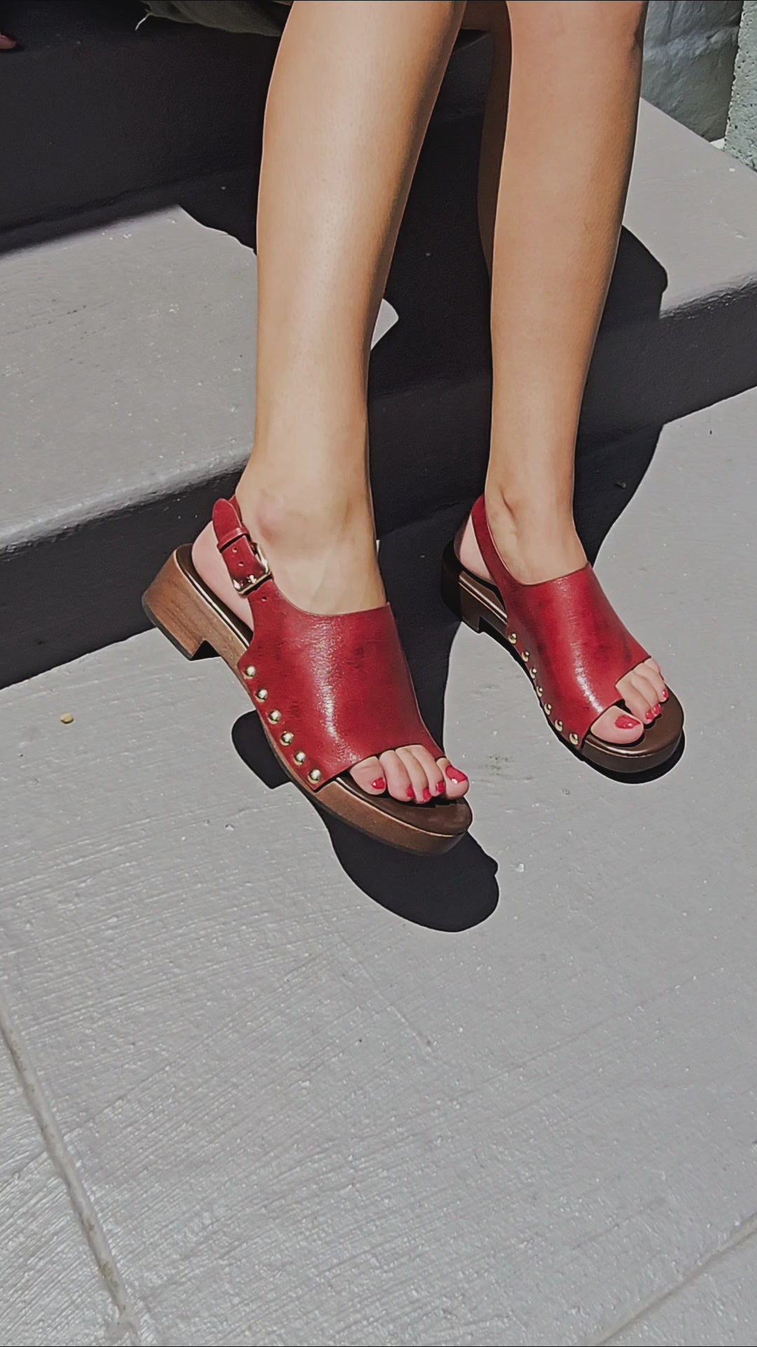 PIPPIN by Jeffrey Campbell is a clog sandal with stud detailing on the leather upper.