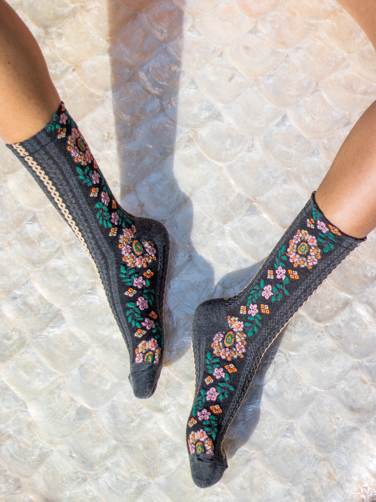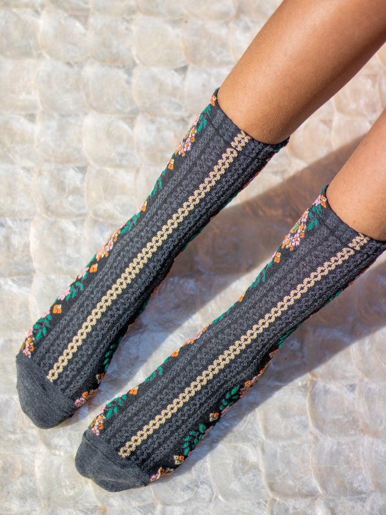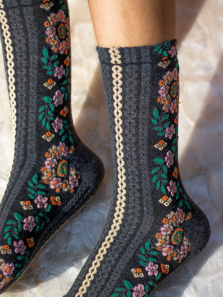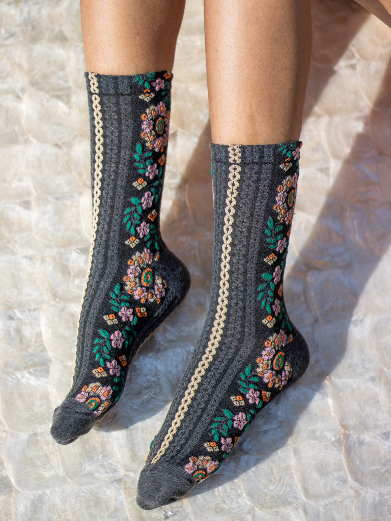 EMBOSSED CABLE FLORAL VINE DARK GREY
