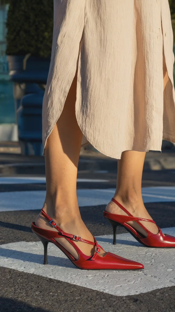 FAX ME by Jeffrey Campbell is a slingback heel with dainty buckled straps on the upper.